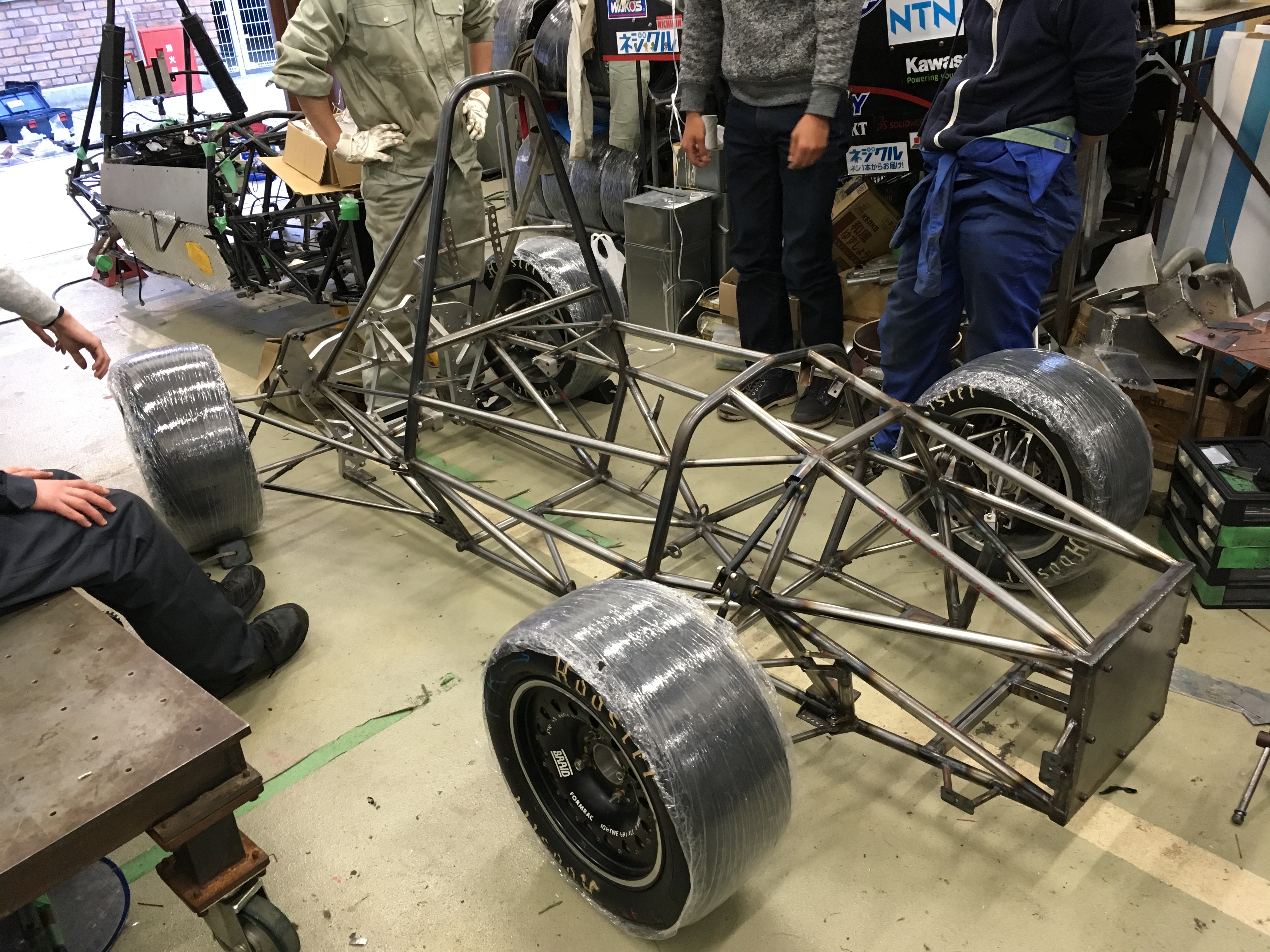 自立しました! 2017Project 2017.04.14 すっかり暖かくなり春がようやくやって来たそんな感じがします。こんにちはリーダーの南家です。 さて、タイトル通り自立しました。ようやく自立と言う感じです。しかし、エンジンも始動確認ができているので後は17マシンにアセンブリをしシェイクダウンを迎えるはずです。ここから一気に行きたいと思います。