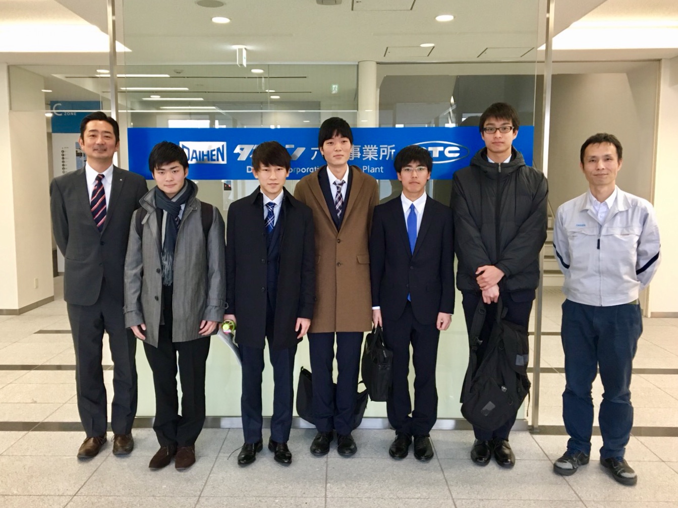 ダイヘン様にて報告会を行いました 2018Project 2018.03.13 こんにちは。エアロ班の三宅です。 先日、株式会社ダイヘン様の六甲事業所にて報告会を行わせていただきました。 和気あいあいとした良い雰囲気の中で報告を進めることができました。 報告会の後、工場見学の機会をいただきました。 世界シェア一位の溶接ロボットを製造・検査・出荷する様子を目の当たりにしました。 製造にも自社のロボットが使われており、興味深かったです。 この度は貴重なお時間を作っていただきありがとうございました。 これからも温かいご声援のほどよろしくお願いします。