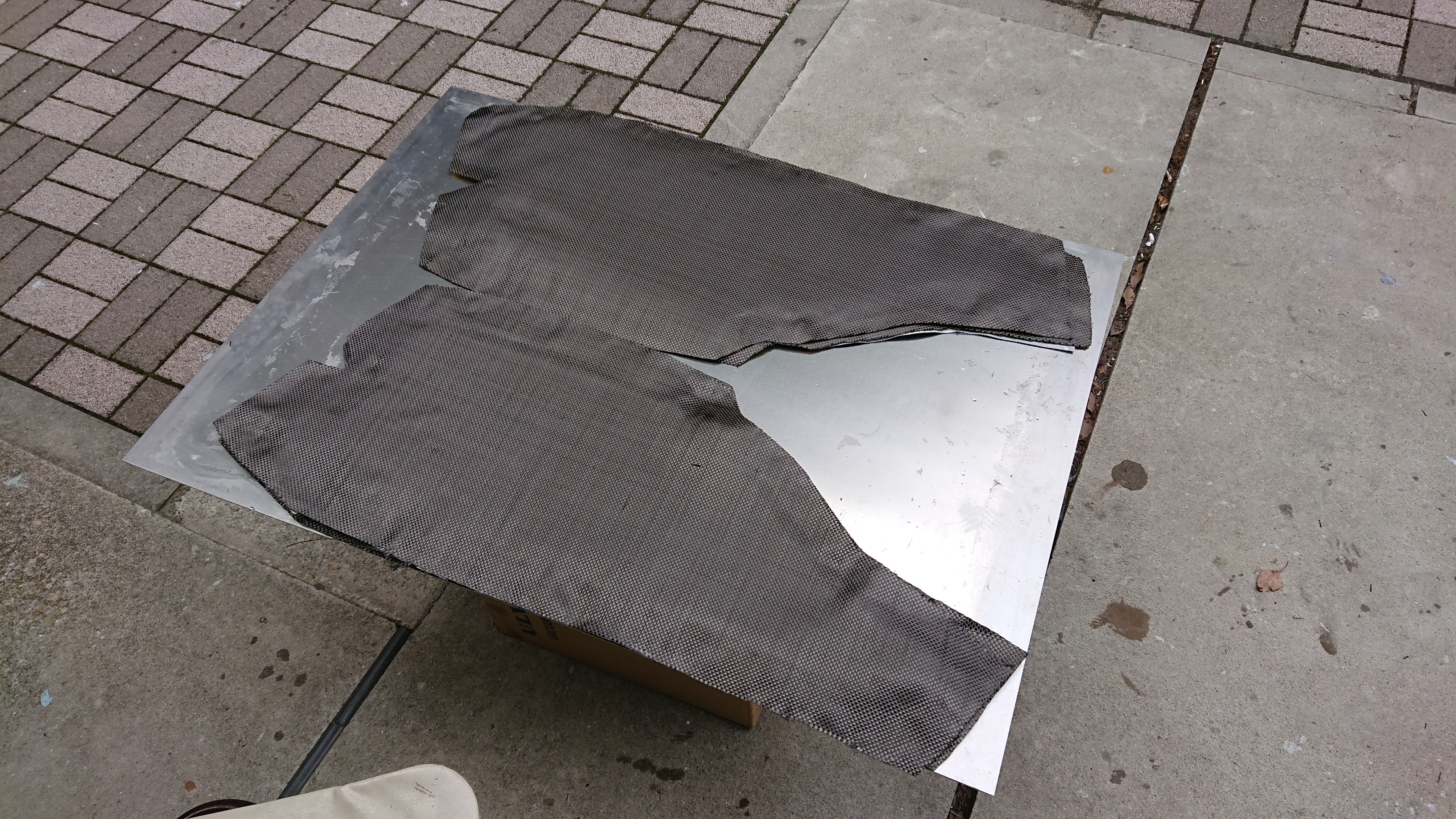 十分時間が経過して、樹脂が固まったら完成です。最初は柔らかく張りのないカーボンクロスですが、プラスチックの樹脂を含侵させて硬化させるとかなりの強度・剛性を発揮します。おもしろいですね。