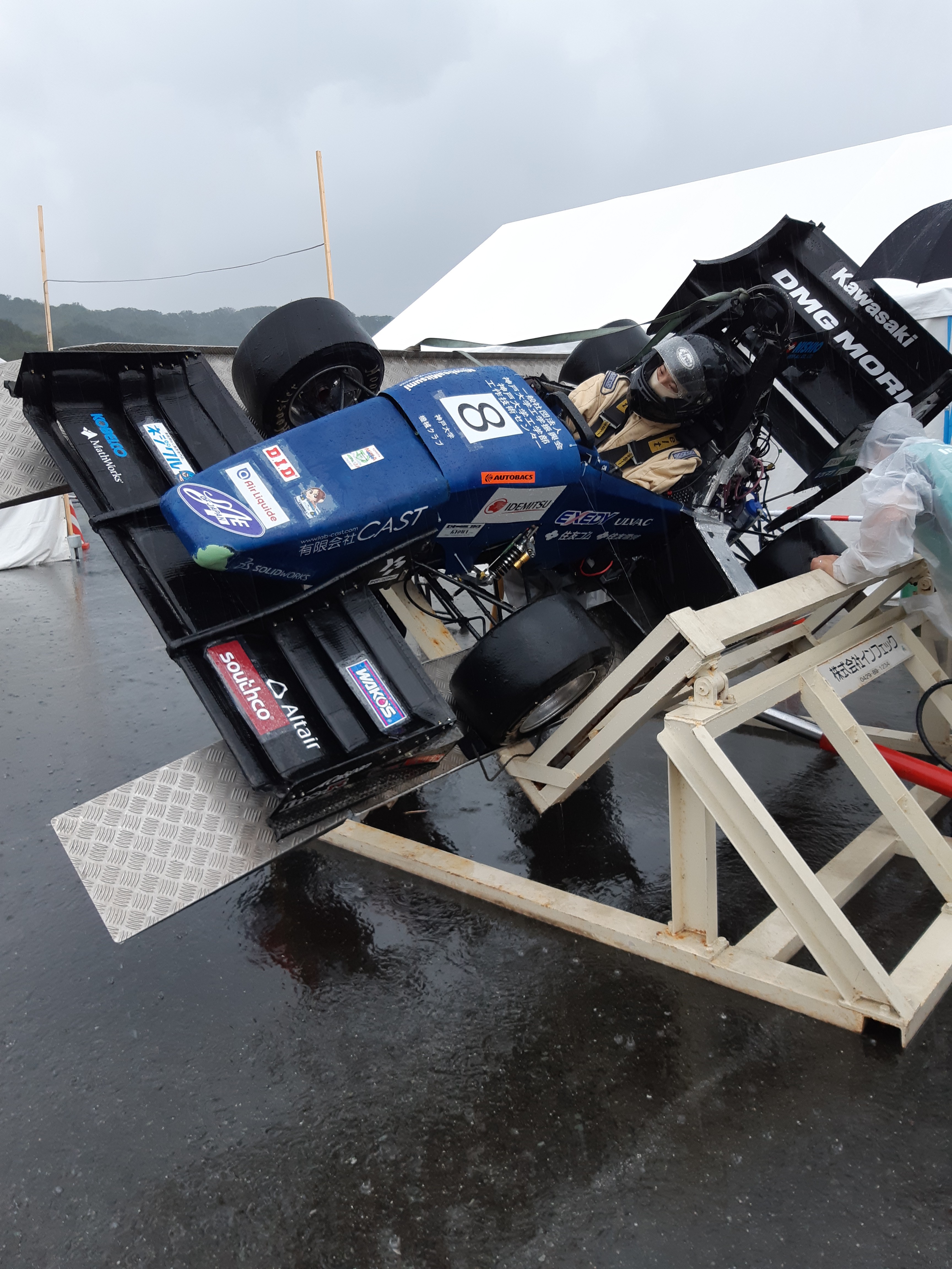 今日は大会1日目でドライバーの5秒脱出、チルト試験、ウェイト、騒音など車検を受けました。 印象的だったのはチルト試験でした。車体を傾けて液漏れがないか、車体が転倒しないかなどを確認するのですが、傾きが大きくなるにつれて少し怖くなりました。 大会はたくさんの大学が参加しているのでたくさんのマシンがあります。少しずつ見学してみたいと思います。