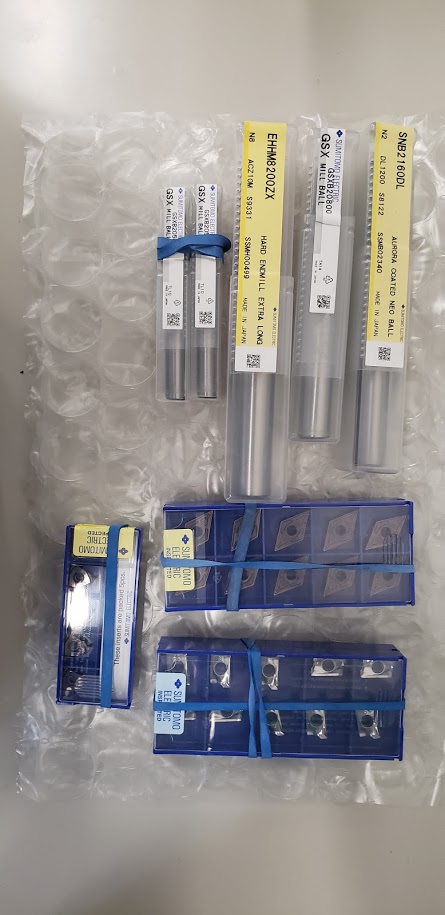 住友電工ハードメタル様からは切削工具を長年ご支援いただいており、今年度もたくさんの工具をいただくことができました。
