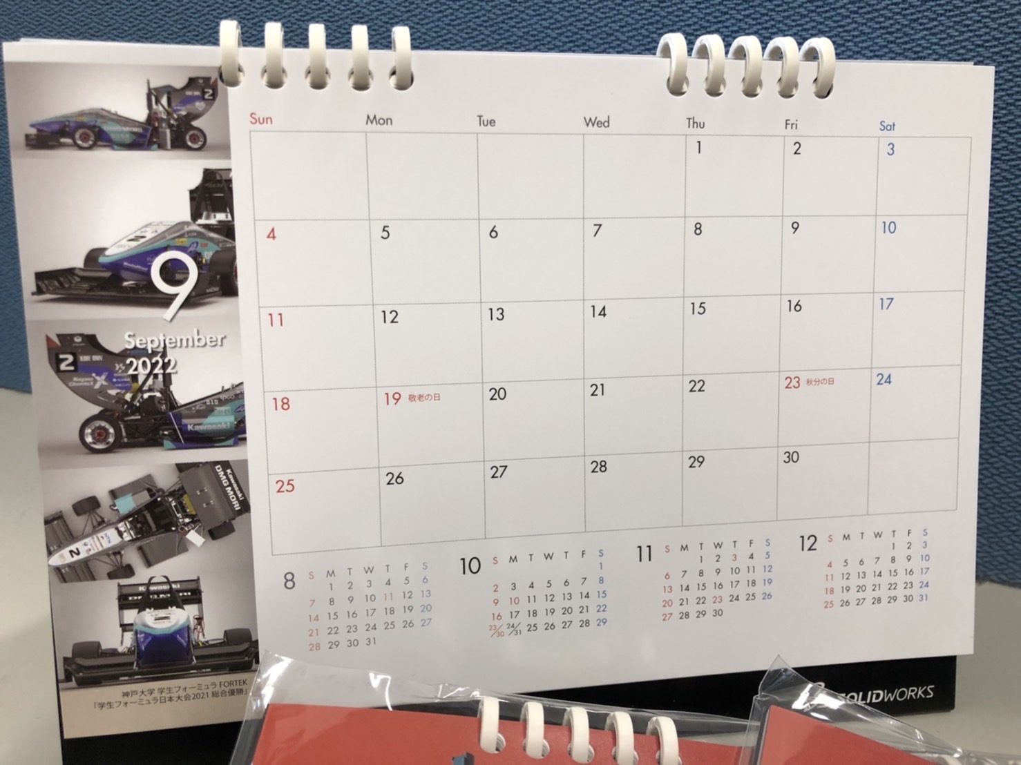 SolidWorks様よりご支援を頂きました。 2021Project 2021.12.15 こんにちは。マネージャー班B2の三島です。 この度、SolidWorks様より、卓上カレンダーを頂きました。 ご支援いただき、ありがとうございます。 そして、なんと、9月のカレンダーには弊チームのマシンを載せていただいております。 弊チームのマシンを載せて頂き、誠にありがとうございます。 弊チームでは、SolidWorksを年間通して、設計に利用させていただいております。 これからもチーム一同、SolidWorksを使い、設計に励んでいく所存でございます。 今後ともよろしくお願いいたします。