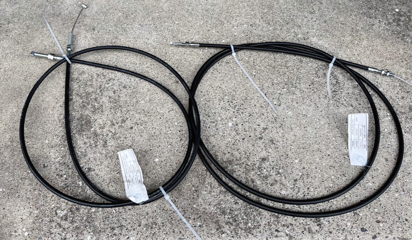 2本はそれぞれアクセルケーブル・クラッチケーブルとして使用します。