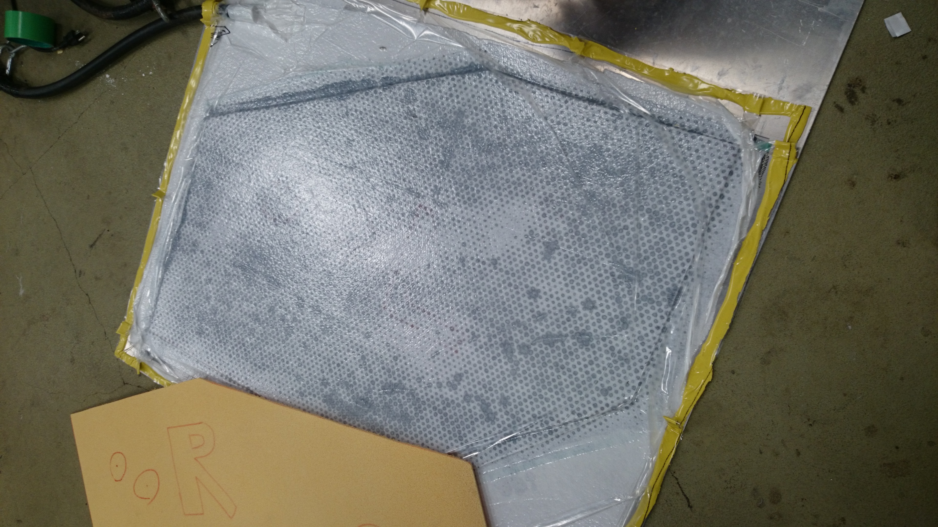 翼端板の積層 2016Project 2016.08.25 こんにちは、エアロ班の3回生、小林です。 気づいたら、もう大会まで2週間を切っております。 今日は、ほかのメンバーが暑い作業場でスポットクーラー・扇風機を使いながら作業をしている一方で、 一人黙々と空調の完備された部屋でリアウィングの翼端板を積層していました。 気温が高いと樹脂がすぐに硬化してしまため仕方がないのですが、 ほかのメンバーには申し訳ないなあと思いながら作業しました。 週末の走行会は、完全なリアウィングで臨めるように頑張ります。