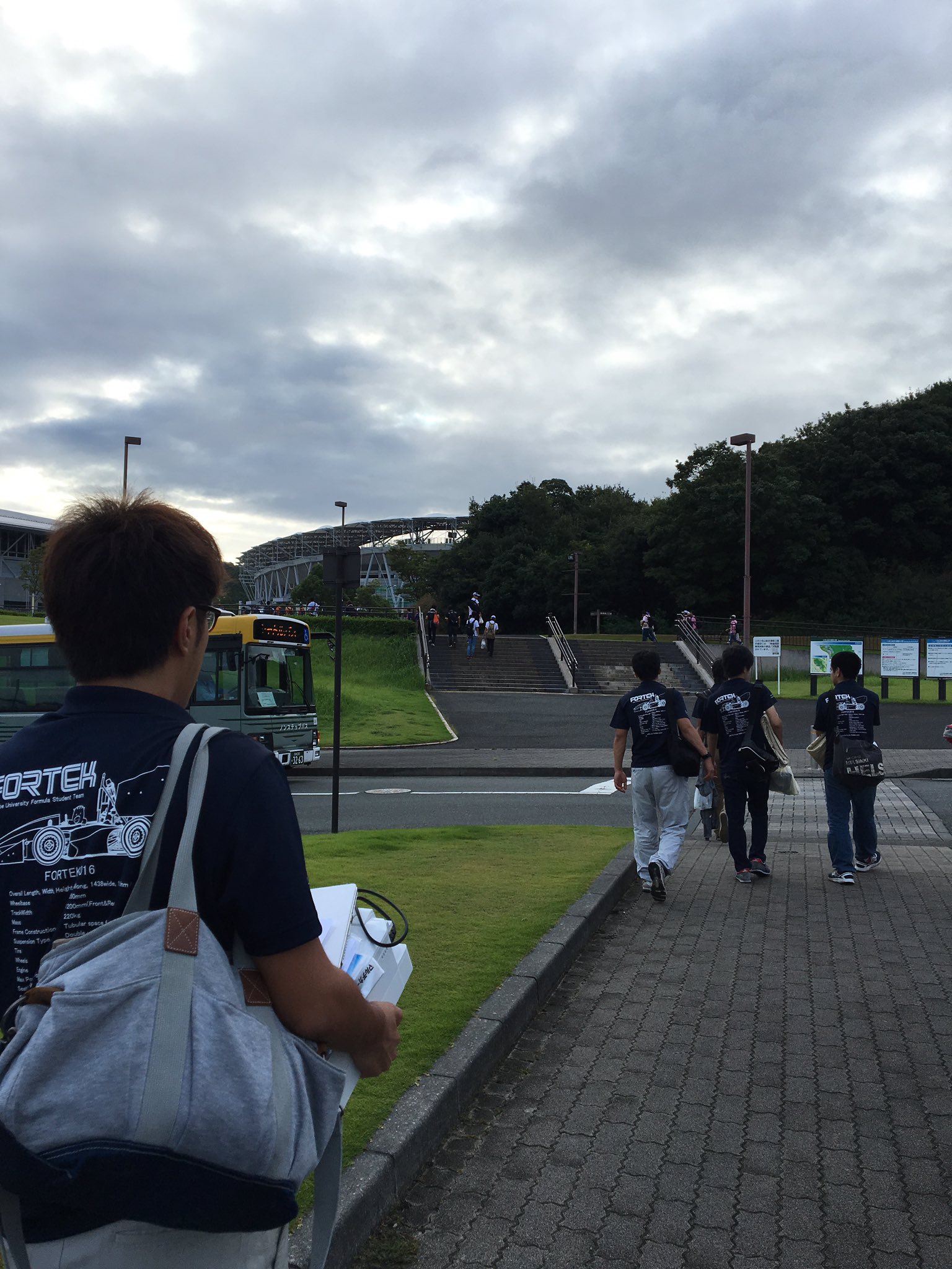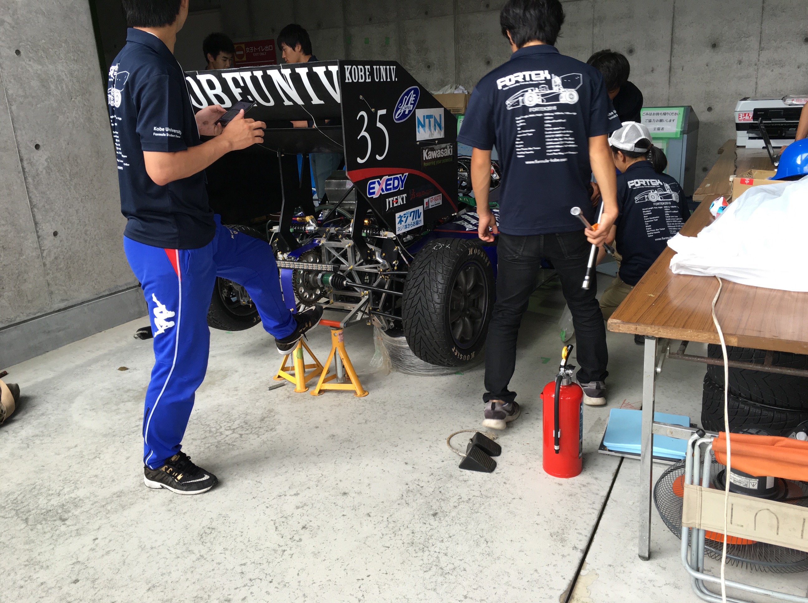 大会2日目のはじまりです 2016Project 2016.09.07 おはようございます。そしてはじめまして、エアロ班1回生の三宅です。 本日のブログは私が担当します。 さて、本日は大会2日目です。 まずは1日目に合格できなかったチルト検査の合格を目指して車両整備を行っております。 そしてお昼からはプレゼン、コスト、デザインといった静的審査があります。 担当の先輩方、応援しております!