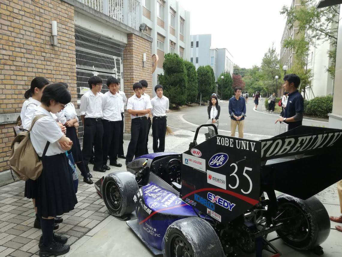 高校生向け車両展示 2017Project 2016.10.20 朝晩が寒くなってまいりました六甲山の麓にございます神戸大学のB2の南家です。 さて、本日は機械工学科の研究室へ見学に来た高校生に向けた車両展示と説明を行いました! 短い時間でしたがたくさんお話しできてとても良い時間でした。 一人でも多くの方が、神戸大学そして学生フォーミュラに興味を持ってくれたらなぁとしみじみ思いました。