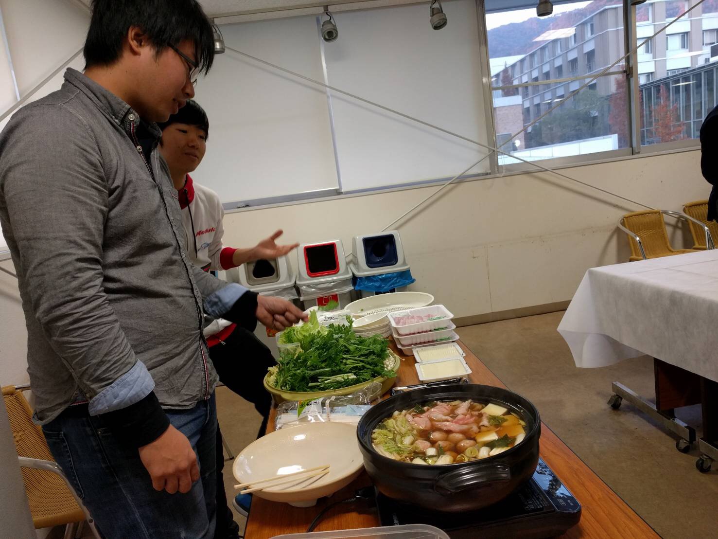KTCM懇親会 2017Project 2016.12.10 こんばんは リーダーの池北です。 今日はKTCMの懇親会に参加させていただきました。 KTCM機械クラブの方々には多大な支援をしていただいていますので、日々の感謝を込めて懇親会に鍋を提供しました。 多くの方にアドバイスと激励をいただき、良い機会となりました。今後ともご声援よろしくおねがいします。