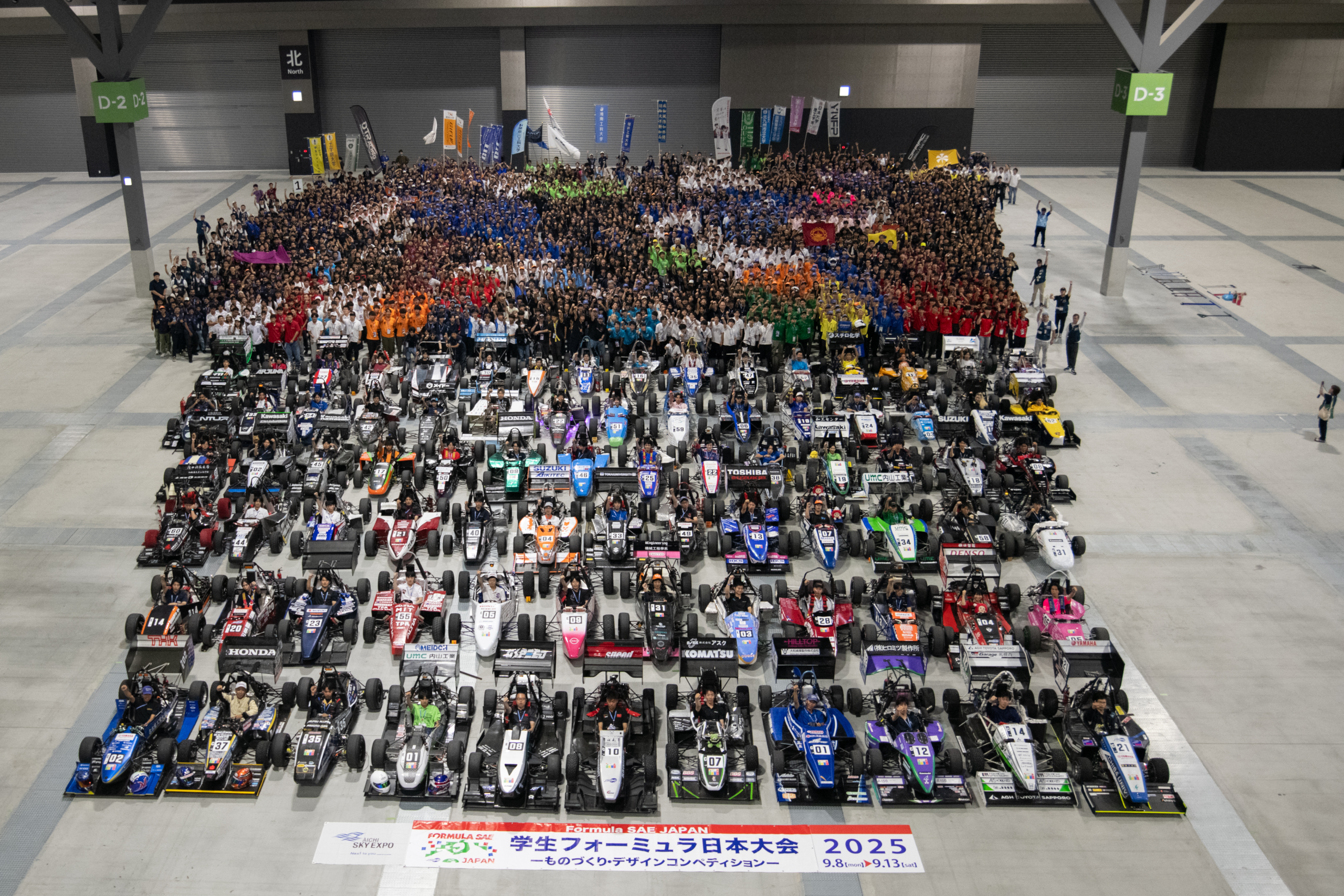 現在の日本大会では、毎年EV(電気自動車)・ICV(内燃車)合わせて100チーム近く(海外校ふくむ)のエントリーがあり、毎年夏に愛知県で、唯一無二のマシンと用意してきた各種資料をもとにそれぞれの強みを競っています。
